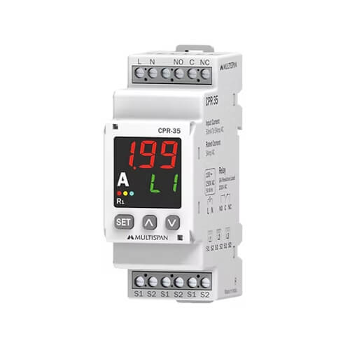 – Current: 0.005 to 5Amp (CT Selection 5/5 to 999/5 A AC) - OUTPUT: 1 Relay (NO-C-NC)